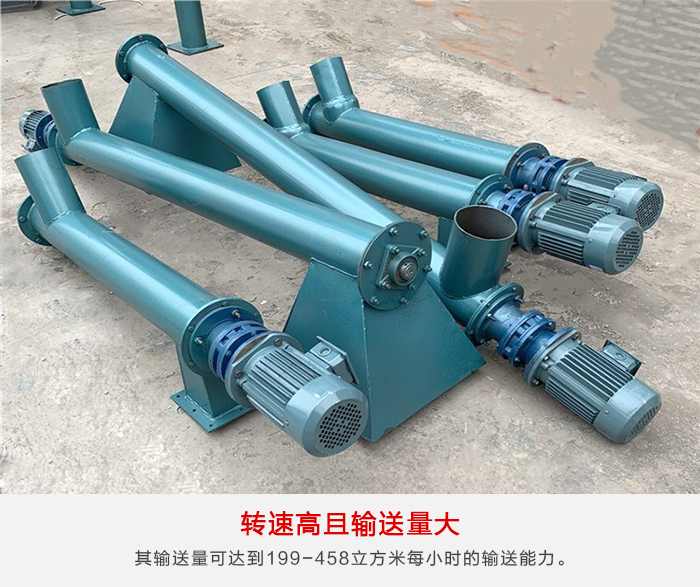 (2)傾斜螺旋輸送機的輸送量大,其輸送量可達到199-458(m3/h)的輸送能力,的同時螺旋輸送機的轉(zhuǎn)速也相對較高、其特別適用于傾斜和垂直輸送的輸送角度。