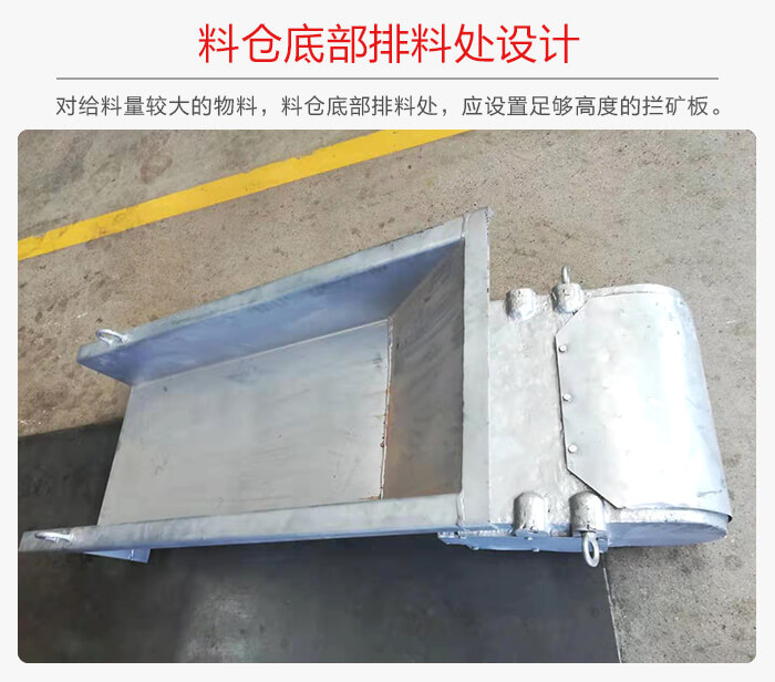 對給料量較大的物料,料倉底部排料處,應(yīng)設(shè)置足夠高度的攔礦板; 為不影響給料機的性能,攔礦板不得固定在槽體上。