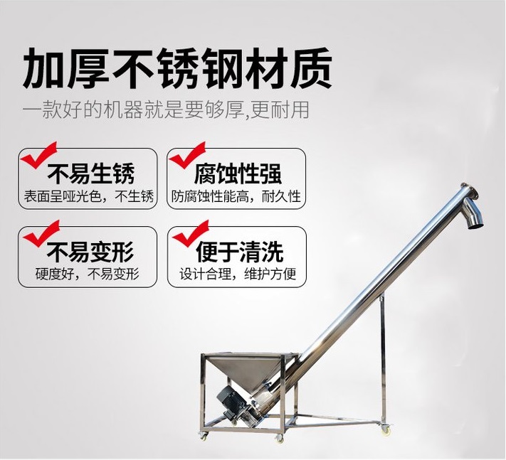 不銹鋼螺旋輸送機(jī)采用304或316L不銹鋼制造,耐酸堿腐蝕,耐高溫,螺旋面經(jīng)處理不易生銹,保證原料不污染,無殘料在機(jī)器中,適用于必須嚴(yán)格避免輸送材料受到任何污染,要求清潔和完美耐腐蝕的應(yīng)用,如食品、化學(xué)品、醫(yī)藥以及任何其他需要衛(wèi)生、腐蝕或極端溫度的應(yīng)用。