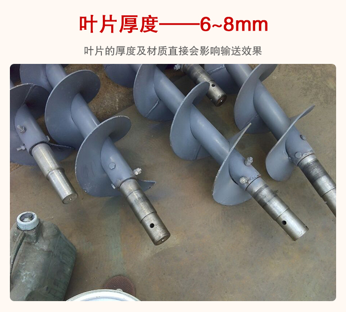 管型螺旋輸送機是依靠螺旋葉片的推力來實現(xiàn)對物料的輸送機的,所以葉片的厚度及材質(zhì)直接會影響輸送效果,葉片厚度一般在6~8mm左右,也可以根據(jù)物料的耐磨程度來加厚,這些直接與設(shè)備的使用壽命掛鉤的,所以用戶在選型時要特別注意這一點。